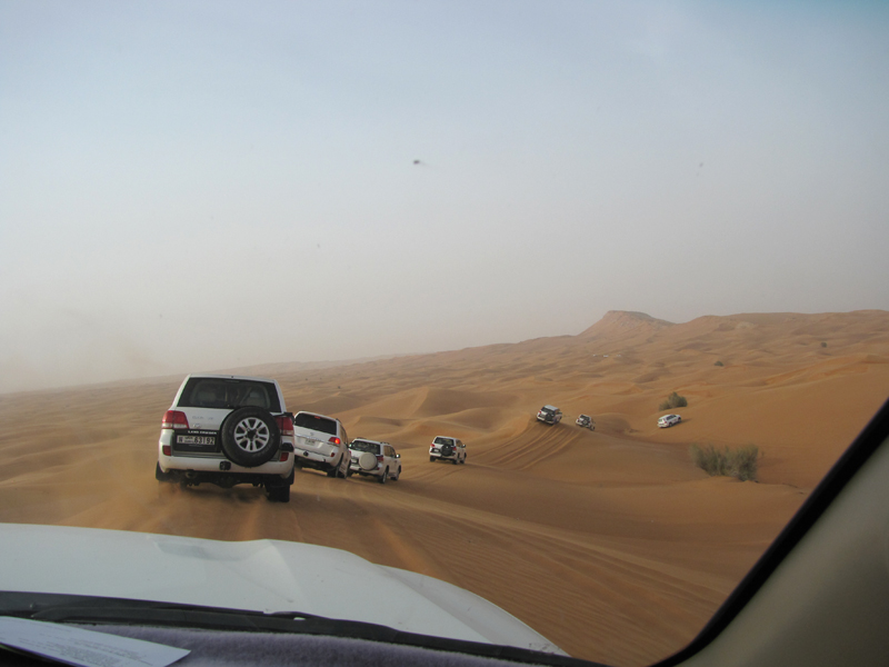 Driving out into the desert, I realized something else: This is a very monochromatic city. While we were driving down the highway, I couldn’t help but notice how almost every single car was either black or a creamy white. It’s like the drivers had this unspoken agreement of how their cars should reflect the colors of the city, as all the buildings here are either sand or creme or a futuristic combination of dark steel and glass. When a little radiant blue car was overtaking us feverishly, I felt the urge to wave and high five the driver for taking a stand for individuality.